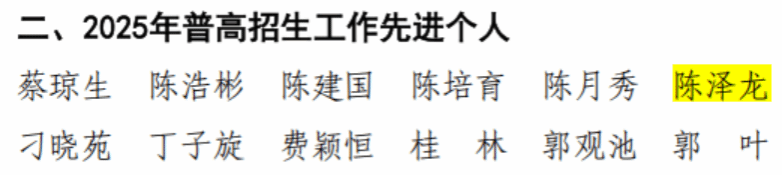 获评2025年本科毕业生就业工作先进单位,陈泽龙、张技老师荣获2025年普高招生工作先进个人,谢玲、曹忠、揭海、彭绍湖老师荣获2025年本科毕业生就业工作先进个人。(文案:张宇靖 编辑审核:谢玲)