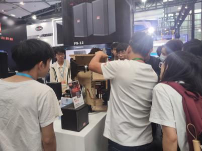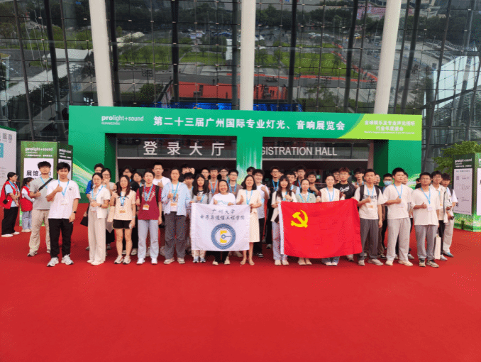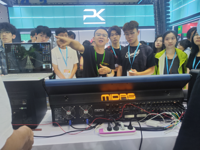 在主办方负责人及支部书记欧阳曦、王沁芳老师的带领下,学生党员和师生代表首先观看了广交会开幕式及“独角秀”特色展示,专业灯光与音响技术打造的沉浸式视听场景、智能乐器的交互式演奏体验、数字光影与元宇宙技术的跨界融合展演,全方位展现了“科技+艺术”领域的创新魅力,让师生直观感受行业发展的前沿趋势。随后,师生们深入展会现场,走访了誉声视听、启信灯光音响、华洋国际、高达尚等多家行业领军企业展位,听取企业技术人员关于产品技术的详细讲解,重点学习企业在技术研发、产品应用及市场推广等方面的实践经验。同学们积极参与产品实操,亲自体验产品性能,深度探索产品背后的科技原理,切实感受对“科技+艺术”融合业态的理解。