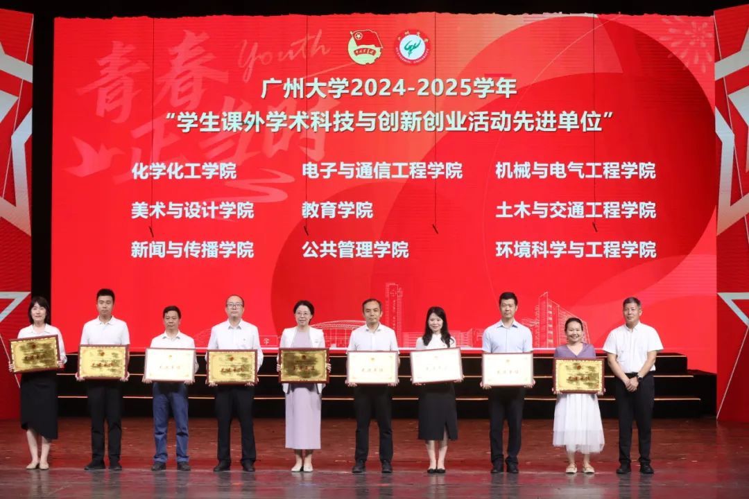 荣获广州大学2024-2025学年学生课外学术科技竞赛创新创业活动先进单位;曾衍瀚副院长获评“学生课外学术科技与创新创业活动优秀指导老师”。